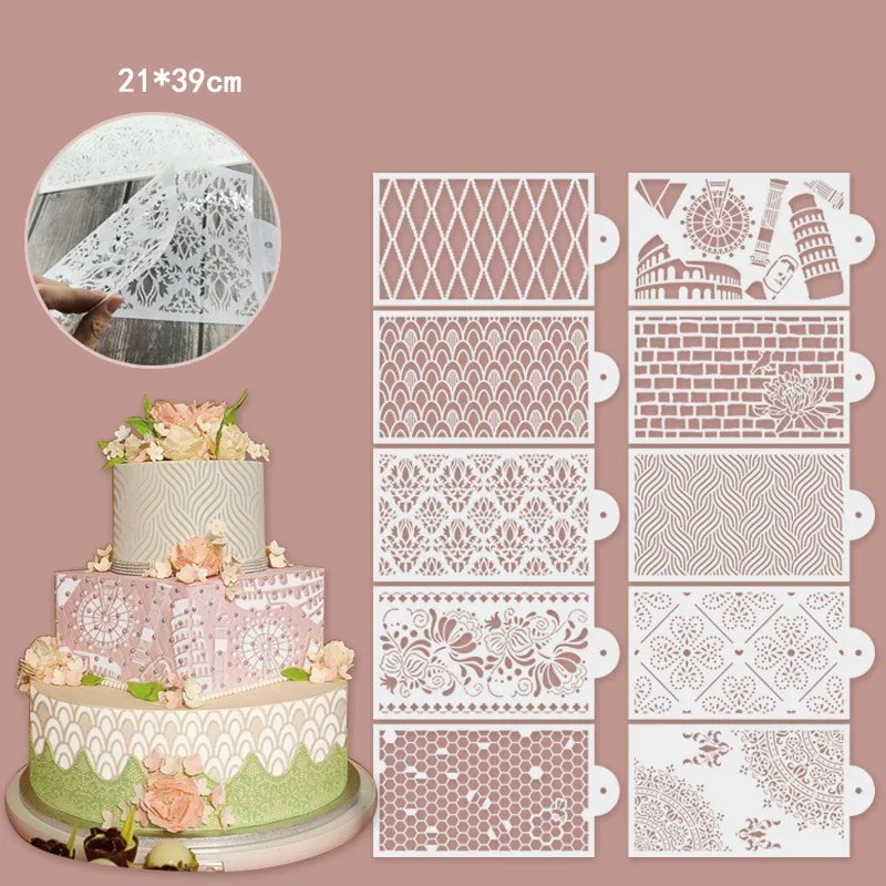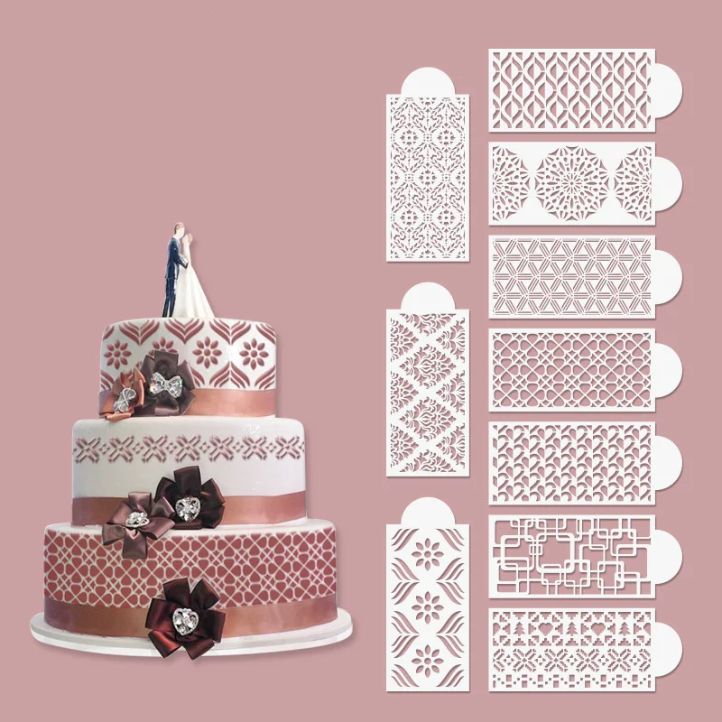Todos os nossos estênceis são reutilizáveis e fáceis de limpar. faça rapidamente qualquer padrão nos lados do bolo.